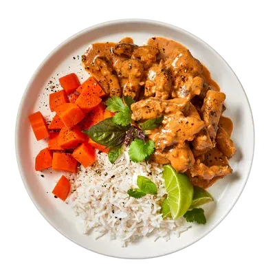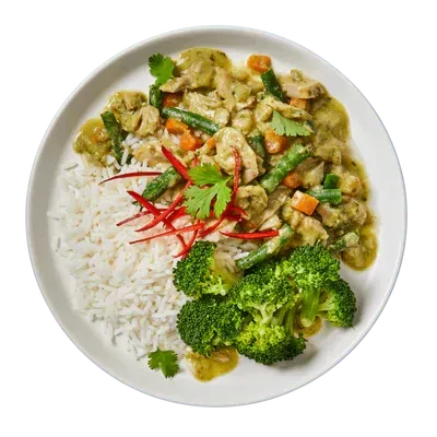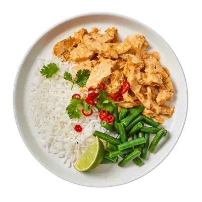 Free range chicken thigh, Medium grain rice (sun rice), Water, Cucumber, Carrot, Peanut butter(peanuts, salt), Curry powder(Turmeric, Coriander, Salt, Fenugreek, Black Pepper, Chilli Powder, Rice Flour, Allspice, Celery), Red chilli powder, Ginger, Garlic, GF Soy sauce, Sriracha, Sesame oil, Rice wine vinegar, Organic brown sugar, Sesame seeds, salt, Coriander, Peanuts, Chillies